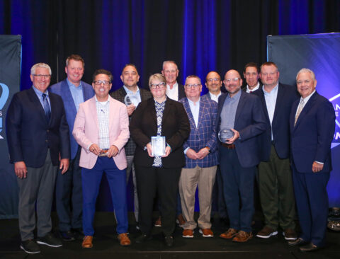 Pictured above: Accepting four IAPD awards are: Front row left to right – Peter DelGado (Vice President – Training & Customer Service, Curbell Plastics, Outgoing IAPD President), James Forcellina (Senior Regional Director, Curbell Plastics), Sherrie Bloom (Director of Marketing, Curbell Plastics, IAPD Board of Directors Member), Eddie Howe (Senior Regional Director, Curbell Plastics), Jeffrey Burke (Senior Regional Director, Curbell Plastics, Outgoing IAPD Board of Directors Member), Luke Wittman (Purchasing Manager, Curbell Plastics), Jim Richards (Vice President of Industrial Sales, PLASKOLITE, IAPD President). Back row left to right – Gerry Helbig (President, Curbell Plastics), Dallas McLaughlin (Senior Regional Director, Curbell Plastics), Jeff Ostrowsky (Director of National Accounts, Curbell Plastics), Abdul Sarac, Ph.D. (Chief Operating Officer, Curbell, Inc.), and Keith Hechtel, DBA (Vice President of Business Development & Marketing, Curbell Plastics).